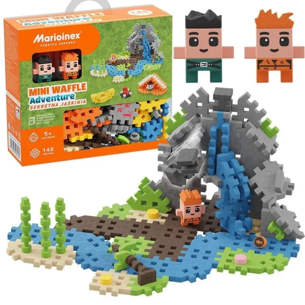 Zestaw składa się z 148 elementów, w tym z dwóch wyjątkowych figurek bohaterów. Daje on możliwość stworzenia własnej, niepowtarzalnej jaskini. Klocki Mini Waffle są niezwykle oryginalne, a budowanie z nich stwarza niesamowite możliwości oraz inspiruje do twórczych działań!