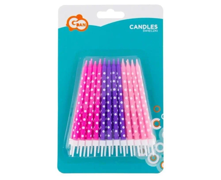 Świeczki "Grochy" przeznaczone dla dziewczynek w zestawie 24 sztuki