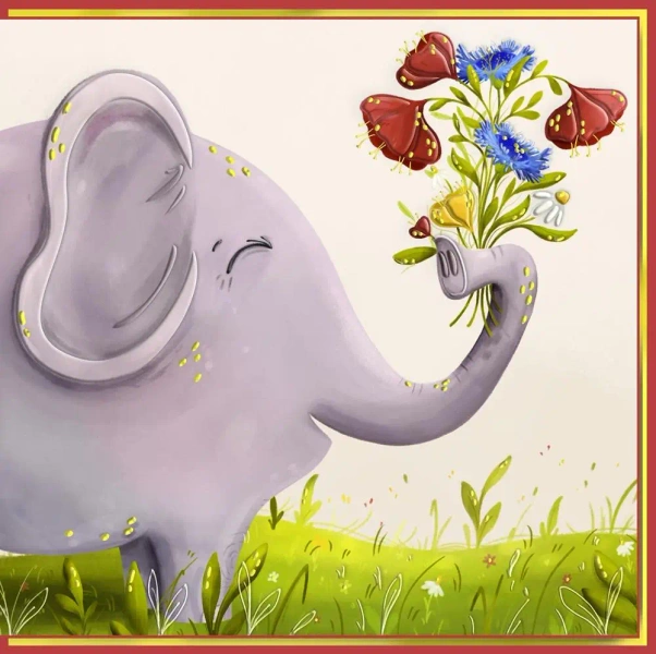 Opis produktu: Karnet KW Słoń z bukietem Henry