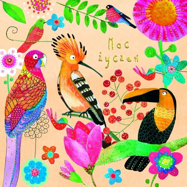 Karnet jest zdobiony złoceniami i posiada tłoczenia. Do zestawu dołączona jest także kolorowa koperta.