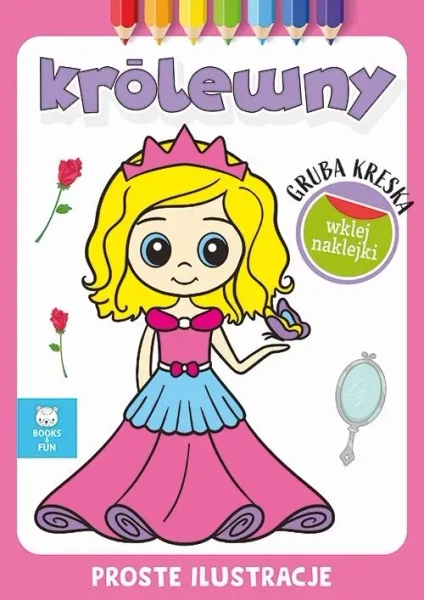 "Gruba kreska - Królewny" to zbiór kolorowanek o minimalistycznej grafice, przeznaczony przede wszystkim dla najmłodszych maluchów. Książka zawiera ilustracje z konturami o dużych rozmiarach, które umożliwiają łatwe kolorowanie, gwarantując przy tym mnóstwo radości. Została ona skonstruowana tak, aby pomóc dzieciom w ćwiczeniu motoryki małej. Dodatkowo, wewnątrz publikacji znajduje się bonusowy prezent - stworzone specjalnie dla nich, naklejki które pomagają w wyborze odpowiednich barw.