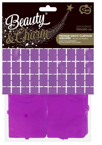 Fioletowa, metaliczna kurtyna B&C w kształcie kwadratów 100x200cm