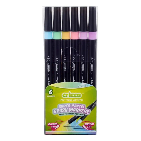 Pisaki pędzelkowe pastelowe dwustronne 6 kolorów - Cricco