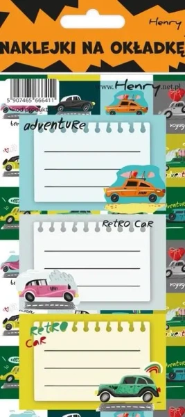 Naklejki na zeszyty - Auta (12szt) - Henry
