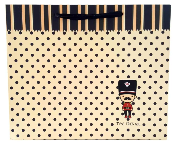 Sprzedawane są w pakietach, zawierających 12 sztuk z róznymi wzorami. Książki prezentują się wyjątkowo efektownie, dzięki klasycznemu wykonaniu. Torebki posiadają rozmiar 42 cm szerokości, 23 cm wysokości i 12 cm głębokości. Dostępne są w różnorodnych wzorach, dzięki czemu każdy komplet jest wyjątkowy. Bez względu na okazję, te przepiękne torebki dodadzą blasku każdemu upominkowi.