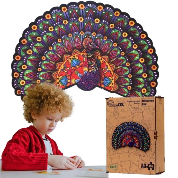 Luksusowy Paw to przemyślana propozycja dla każdego miłośnika układanek, który poszukuje wyjątkowych koncepcji i inspiracji. Puzzle drewniane są nie tylko ciekawym, relaksującym zajęciem, ale także doskonałą ozdobą na ścianę w każdym pomieszczeniu. Natomiast estetyka opakowania oraz pomysłowość samej układanki sprawi, że będzie to idealny pomysł na prezent dla bliskiej osoby zainteresowanej ekologią i sztuką.