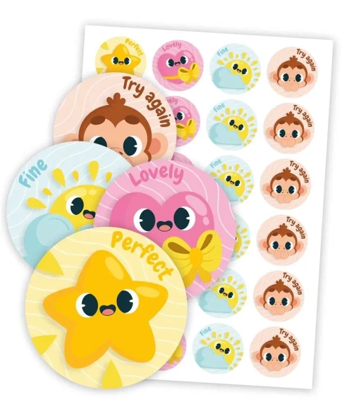 Naklejki mają średnicę 40 mm i są wydrukowane na papierze błyszczącym, co dodatkowo podnosi ich atrakcyjność. To doskonały dodatek do pracy z uczniami na różnych etapach nauki.