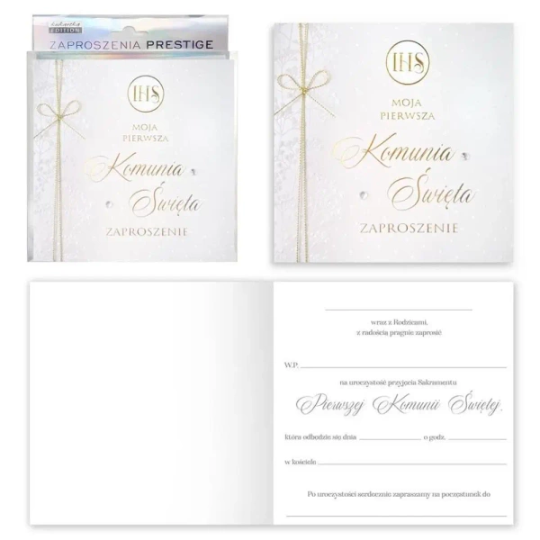 - Rodzaj produktu: Zaproszenie na Komunię - Dekoracje: elementy dekoracyjne do przyklejenia, przestrzenne tłoczenie, co najmniej dwa uszlachetnienia z folii lub brokatu - Przybliżone wymiary: 14,5 x 14,5 cm - Zawartość opakowania: 5 sztuk zaproszeń wraz z dopasowanymi kopertami - Okazja: Komunia Elegancja, szyk i dbałość o najdrobniejsze szczegóły sprawia, że Zaproszenia Premium na Komunię ZP-028 stanowią doskonały wybór na to wyjątkowe wydarzenie.EAN: 5901924485322