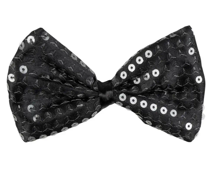Prezentujemy czarną muchę z cekinami - elegancki dodatek do każdej formalnej stylizacji. Idealna na przyjęcia, wesela, bankiety czy inne eleganckie okazje, ta mucha doda szyku i wyrazistości Twojemu stroju.