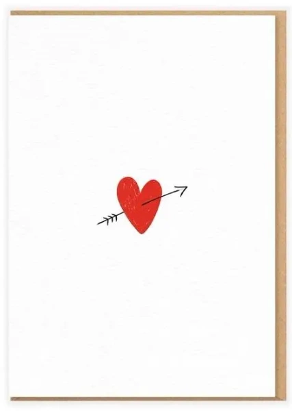 Bez względu na to, czy mówimy o Kupidynie, Amorze czy Erosie, Bóg miłości zawsze celuje swoją strzałą prosto w serce. Jeżeli byłeś już obiektem jego strzał, nie wahaj się podzielić tą informacją z osobą, która rozpaliła w Tobie uczucia! Kartka miłosna zatytułowana SERCE z uproszczonym wzorem przedstawiającym serce i strzałę, to doskonałe uzupełnienie prezentu dla twojej drugiej połówki.