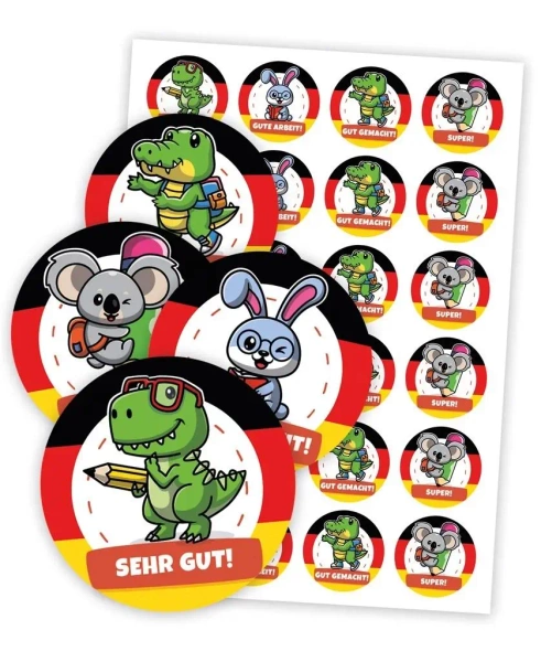 Unikalny pakiet 48 naklejek "Niemieckie zwierzątka" stworzony z myślą o najmłodszych. Szeroko zinterpretowane wizerunki wesołych zwierząt połączone z niemieckimi napisami sprawią, że uczniowie poczują się docenieni i zmotywowani.