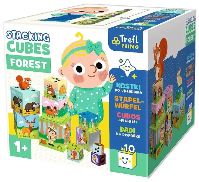 Odkryj fantastyczny zestaw 10 kolorowych kostek kreatywnych - Las, które różnią się między sobą wielkością. Kostki można łączyć w przeróżne konfiguracje, budując wieże czy układanki według własnych pomysłów.