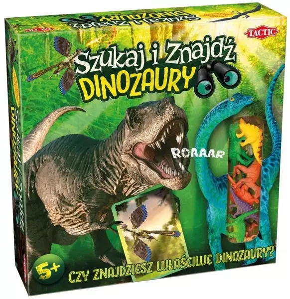 Zapraszamy do tajemniczego parku, zamieszkiwanego przez największe bestie, które kiedykolwiek istniały na Ziemi! W grze Szukaj i Znajdź Dinozaury macie szansę wybrać się na ekscytującą wyprawę tropiącą te niezwykłe stwory. Zasady są proste - kiedy gracz zauważy dinozaury oznaczone na kartach i wskaże oba na planszy, zdobędzie figureczkę Dinozaura. To niesamowite doświadczenie jednocześnie zapewnia dynamiczną zabawę i stymuluje rozwój refleksu oraz umiejętność obserwacji. Dodatkową atrakcją jest dwustronna plansza-puzzle, która za każdym razem umożliwia stworzenie innego układu.