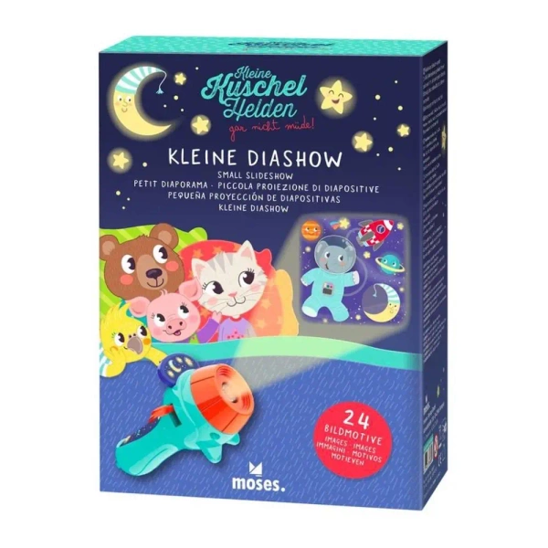 Dzięki małemu projektorowi można opowiadać trzy różne historie z ośmioma obrazkami: Słodkie Sny, Pory Roku oraz Czas Spać. Fascynujące obrazy uroczych zwierzątek oraz czarujące opowieści z pewnością szybko usypiają dzieci, spowodują zmęczenie i delikatne zamknięcie oczu.
