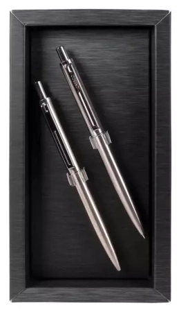 Sofystykowany komplet, składający się z długopisu oraz ołówka automatycznego, pochodzi od renomowanej marki Cresco, znanej ze swojej luksusowej kolekcji Reporter. Oba elementy zestawu wykonane są z solidnej stali nierdzewnej, co gwarantuje ich trwałość i wytrzymałość. Ten atrakcyjny komplet prezentowany jest w estetycznym etui, doskonale nadaje się na elegancki podarunek.