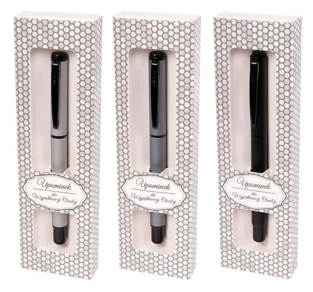 Pióro wieczne z serii WINNER Black to klasyk wśród przyborów do pisania. Jest dedykowane dla osób, które cenią tradycyjne naboje. Wyjątkowe dociążenie kolekcji gwarantuje komfortowe i pewne trzymanie pióra, a metalowa obudowa dostępna w różnych matowych odcieniach dodaje mu elegancji. Szczególnie wyróżnia się irydową stalówką w srebrnym kolorze. Każde pióro pakowane jest w eleganckie etui prezentowe, dzięki czemu stanowi idealny upominek dla miłośników klasycznego piśmiennictwa.