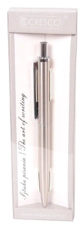 Ekskluzywny, automatyczny ołówek wykonany ze stali nierdzewnej, sygnowany cenioną marką Cresco, stanowi element niezwykle eleganckiej kolekcji Reporter. Ołówek jest doskonałym pomysłem na drobny, lecz szlachetny upominek, gdyż znajduje się w stylowym etui prezentowym.