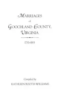 Goochland County, Virginia was carved out of Henrico County in 1728 and was the parent, direct or indirect, of nine other Virginia counties. The Goochland County marriage register upon which this work is based was originally compiled by the staff of the Virginia State Library and subsequently transcribed by Mrs. Williams. In all, it refers to some 3,000 brides and grooms and to another 2,000 associated persons (parents, sureties, and witnesses) mentioned in the register.