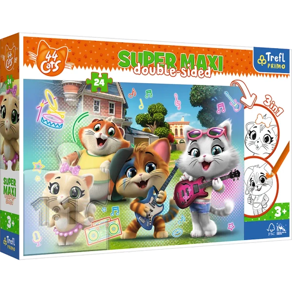 Puzzle 24 Super Maxi: Radosne koty – trzy w jednym!