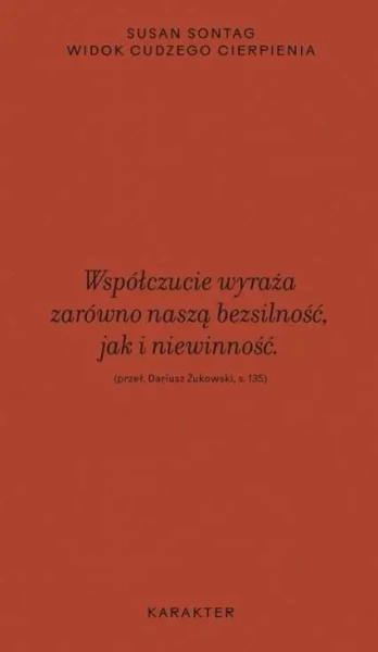 Rozwinięcie i uzupełnienie O fotografii. Autorka powraca do wielu kwestii poruszanych wcześniej, skupiając się jednak na zagadnieniu przedstawiania obrazów cierpienia w mediach, zwłaszcza w fotografii wojennej. Historyczny kontekst, w jakim powstawała książka (niedługo po ataku na World Trade Center), nie pozostał bez wpływu na charakter i temperaturę wywodu. W świecie, w którym codziennie jesteśmy zalewani potokiem obrazów pełnych okrucieństwa, w świecie po ludobójstwie w Rwandzie i po wojnie w byłej Jugosławii, a zarazem w świecie, w którym technika umożliwia prowadzenie wojny na odległość, przedstawianie obrazów cierpienia rodzi nowe pytania i problemy etyczne. Sontag bezlitośnie tropi hipokryzję Zachodu i stosowanie podwójnych standardów w pokazywaniu nieszczęścia, bólu i śmierci. Zastanawia się nad rolą fotografii w kształtowaniu tak zwanej zbiorowej pamięci i stosunku do historii. W centrum rozważań stawia tym razem nie fotografa, lecz widza, który musi określić swoją postawę wobec widoku czyjegoś cierpienia; żadne spojrzenie nie jest niewinne.
