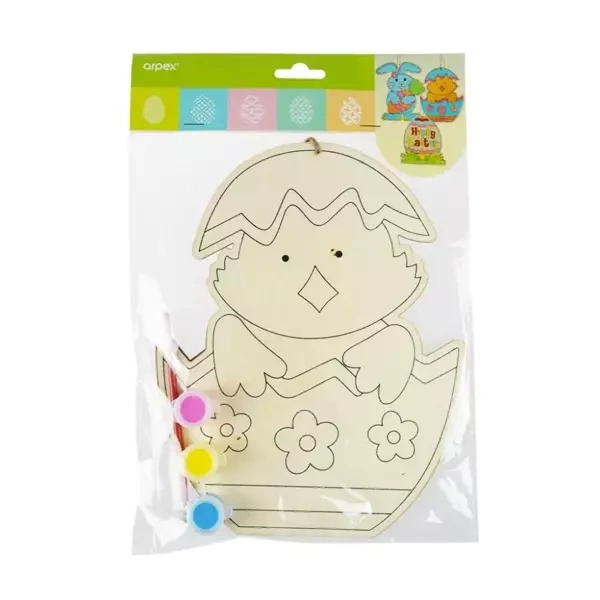 Prezentujemy Państwu komplet do samodzielnej dekoracji wielkanocnej o wymiarach 8x22,5 cm. Zestaw zawiera farby oraz pędzel, które umożliwiają kreatywne pokolorowanie elementów. Ciesz się radosnym, rodzinny czasem twórczości, przygotowując unikalne, ręcznie malowane ozdoby wielkanocne.