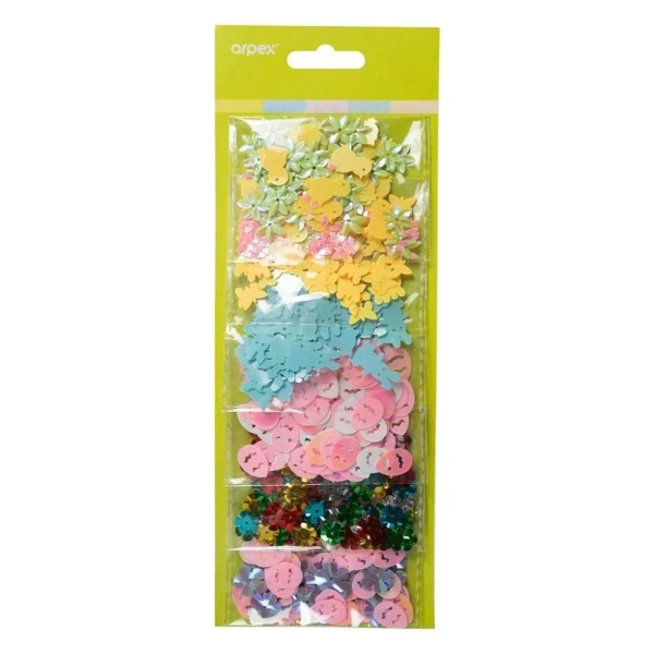 Swoboda i twórcza zabawa to wyznacznik zestawu pełnego dekoracji, konfetti i cekinów w bogatej palecie kolorów. Doskonale sprawdzi się jako pomoc w kreowaniu unikalnych, własnoręcznych projektów i dekoracji.