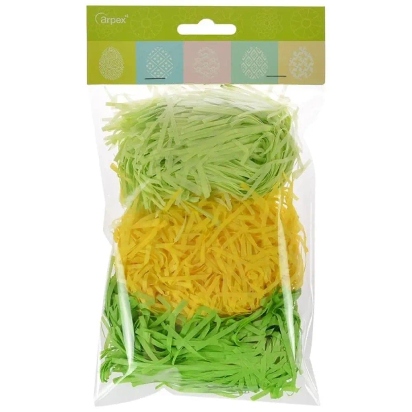 Ta trawa z papieru, dostępna w trzech kontrastujących odcieniach, może dodać uroku różnym dekoracjom świątecznym. Jest oferowana w dwóch różnych kombinacjach kolorów: kombinacji zielono-żółtej oraz niebiesko-żółto-różowej. Każdy pakiet trawy ma wagę 30 g.