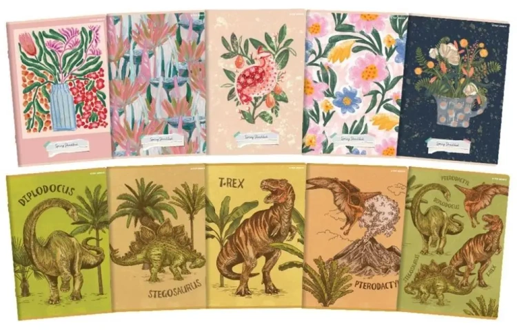 W zestawie znajdziesz 10 sztuk wytrzymałych dino zeszytów.