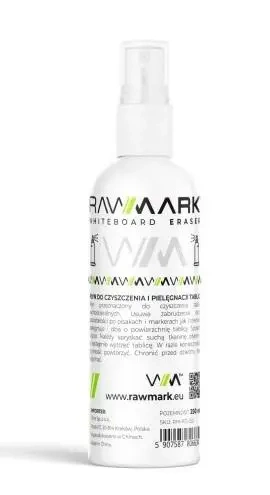 Ten 250ml płyn do czyszczenia tablic suchościeralnych firmy Rawmark to doskonały produkt do utrzymania tablic w czystości. Unikalny aspekt tego produktu to jego praktyczny rozpylacz, który znacząco ułatwia aplikację płynu na powierzchnię tablicy.
