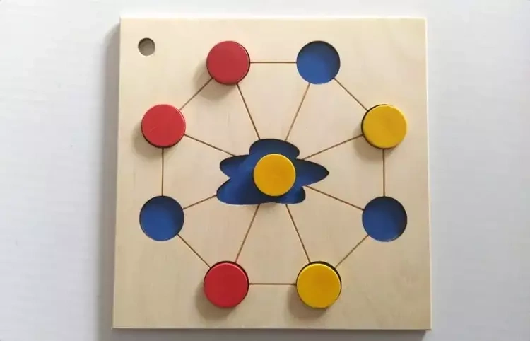 Prezentowana gra przeznaczona jest dla dwóch graczy. W skład zestawu wchodzi plansza z polem centralnym, połączonym z ośmioma polami na okręgu oraz dwa kompletne zestawy pionków w dwóch różnych kolorach, po trzy dla każdej strony. Gracze muszą wykazać się skupieniem uwagi i koncentracją, aby zaplanować własne ruchy oraz przewidzieć posunięcia przeciwnika.