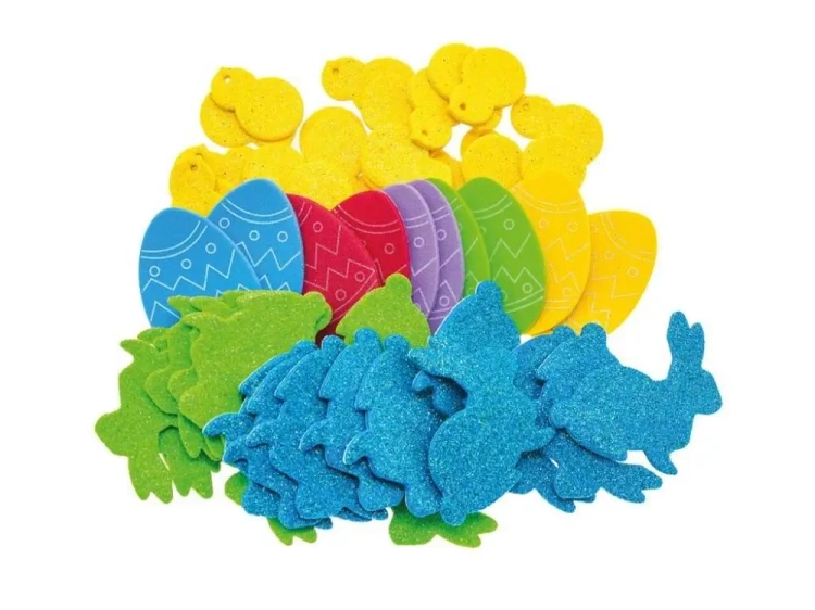 Naklejki wielkanocne z pianki brokatowe 56szt - Brewis