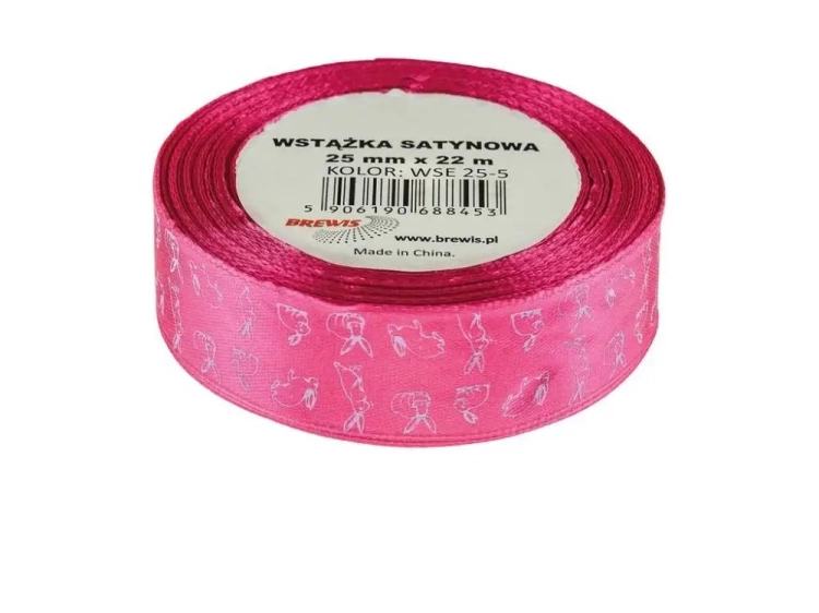 Wstążka satynowa wielkanocna różowa 25mmx22m - Brewis