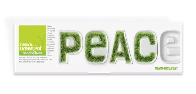 Plantacja PEACE to piękna, ozdobna dekoracja z mini doniczkami uformowanymi w kształcie liter: P, E, A, C, E. Umożliwiają one wyhodowanie zielonej, życiodajnej trawy, która nada pomieszczeniu świeżości i przyjaznego klimatu. Każda z liter jest samodzielną doniczką, a razem tworzą przekaz o wysokim walorze estetycznym oraz ogromnym emocjonalnym ładunku - słowo PEACE symbolizuje pokój i harmonię.