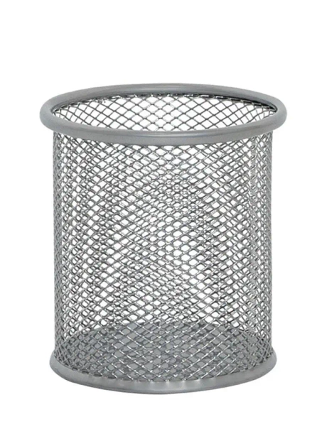 Ten metalowy pojemnik na długopisy jest idealnym narzędziem do porządkowania biurka. Wykonany został z siateczki metalowej, dzięki czemu jest wytrzymały i odporny na uszkodzenia.
