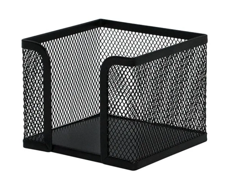 Prezentujemy elegancki, czarny pojemnik na notatki Q-Connect. Wykonany jest z siateczki metalowej, a jego powierzchnia została pokryta lakierem dla dodatkowej ochrony i estetycznego wyglądu.