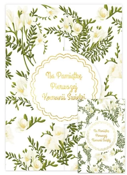 Karnet A5 z klapką Komunia. Frezje - Henry