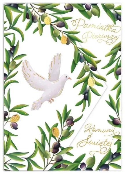 Karnet koperta A5 Komunia. Oliwki i gołąb - Henry