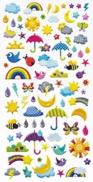 Zestaw kolorowych naklejek przedstawiających różne warunki pogodowe to propozycja firmy Brewis. Cieszą się one dużą popularnością wśród osób, które chcą w ciekawy sposób zaprezentować aktualną pogodę. Naklejki pogoda są praktycznym narzędziem, które pozwala na zobrazowanie zarówno słońca, jak i chmur, deszczu, czy śniegu. Są one kolorowe i atrakcyjne dla oka, co sprawia, że pomoc przy nauce stała się bardziej angażująca.