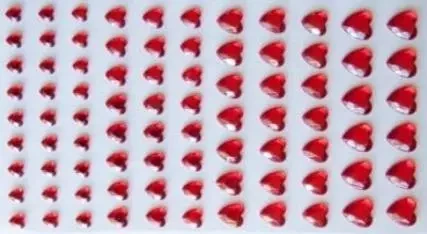 Samoprzylepne dżety w kształcie serc, kolor czerwony, ilość 84 sztuki