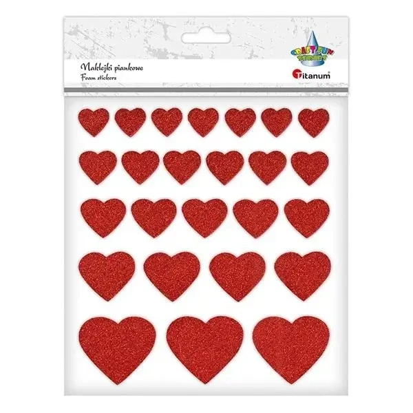 Naklejki piankowe w kształcie serc z brokatem od Titanum