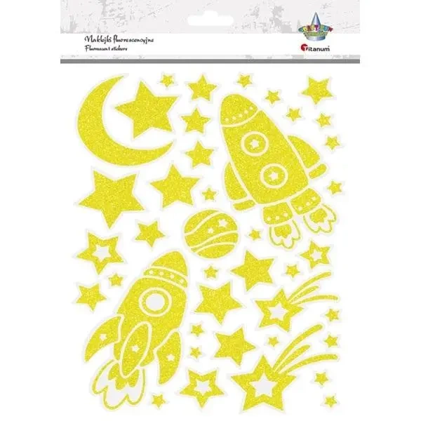 Zestaw 40 fantastycznych naklejek, które zdobędą Twoją przestrzeń i zaświecą w ciemności, to idealny dodatek do pokoju każdego małego miłośnika kosmosu lub sportu. Wprowadź do świat swojego dziecka nieco magii, z rakietami, księżycem, gwiazdkami i piłką koszykową które lśnią nocą.