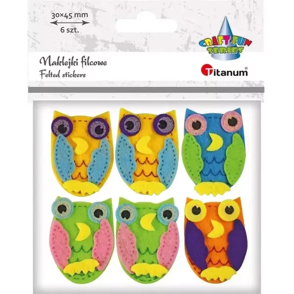 Naklejki filcowe sowy 30x45mm 6szt. - Titanum