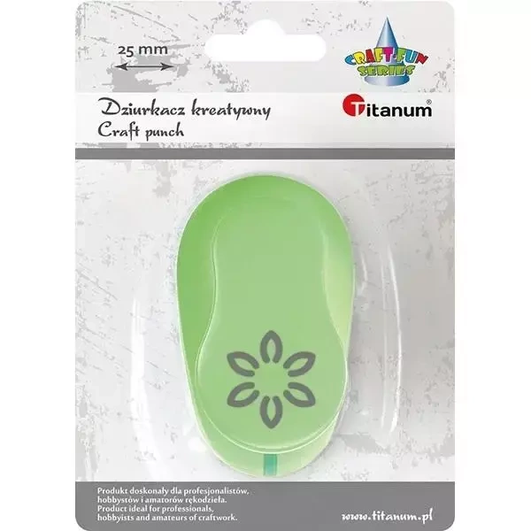 Rozmiar wzoru kwiatu to 25 mm, co sprawia, że można go użyć zarówno do większych projektów, jak i mniejszych detali. Wybierz ten dziurkacz z motywem kwiatowym Titanum, by dodać blasku i uroku swoim tworom!