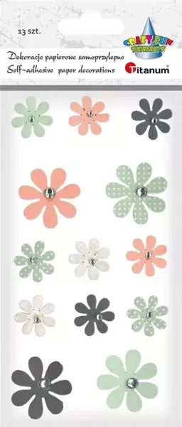 Naklejki papierowe kwiatki z kryształkiem 13szt - Titanum