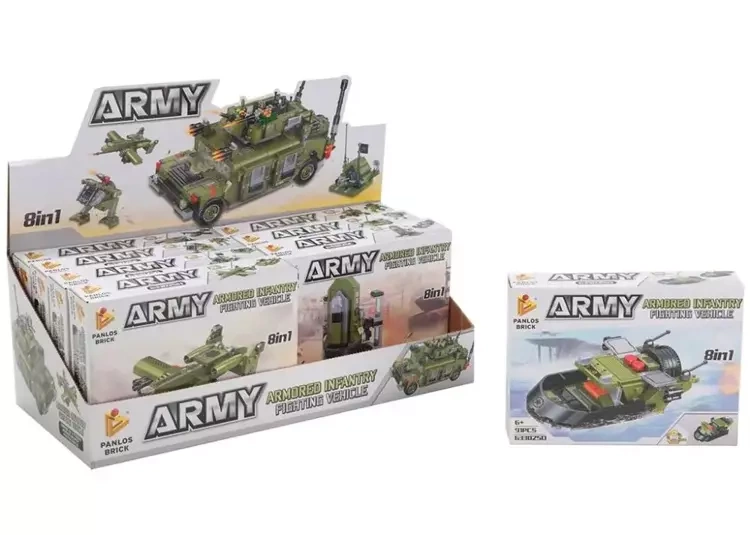 Przedstawiamy zestaw konstrukcyjny składający się z 90 klocków, z których można zbudować różne wojskowe pojazdy. Dostępne są różne trendy, które są wysyłane losowo.