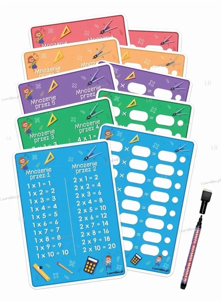 Plansze edu A4 - tabliczka mnożenia +pisak 5 kart