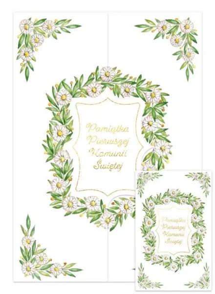 Karnet A5 z klapką Komunia. Stokrotka i merta - Henry
