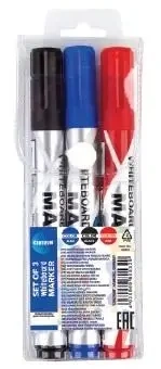Przedmiotem oferty jest zestaw trzech markerów przeznaczonych do zastosowania na tablicach. Zmywalne markery dostępne są w trzech kolorach: czarnym, czerwonym oraz niebieskim.
