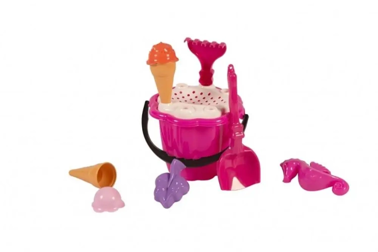 Cały komplet zawiera: wiadereczko, sitko, racyjkę oraz łopatkę. Ponadto, do dyspozycji dzieci są dwie foremki oraz dwie foremki w kształcie apetycznych lodów. Dzięki różnorodnym elementom zestawu, dzieciaki mogą rozwijać swoją kreatywność i wyobraźnię poprzez naśladownictwo dorosłych. Odtwarzanie różnych ról i sytuacji to nie tylko dobrze wpływa na rozwój dziecka, ale przede wszystkim daje mu mnóstwo radości. Foremki umożliwiają stworzenie nie tylko klasycznych zamków i babek, ale także ciasteczek i lodów, które mogą stanowić asortyment w dziecięcej cukierni.