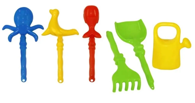 Zestaw do piaskownicy: grabki, łopatka, foremki i konewka